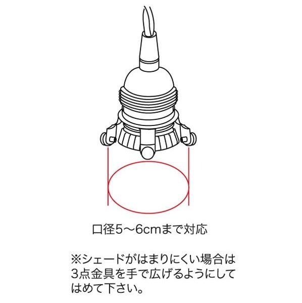 3点留め金具をゆるめてシェードを取り付け、金具を締めて固定します。