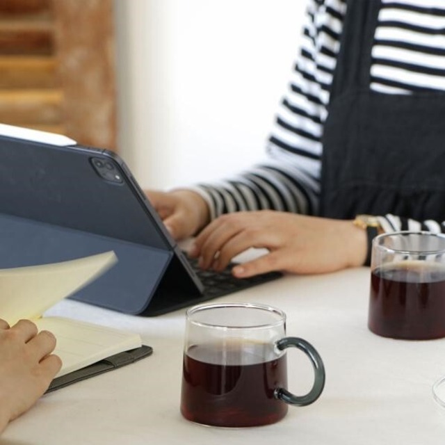 「スコン グラスマグ リング」は持ち手付きのガラス製カップ。