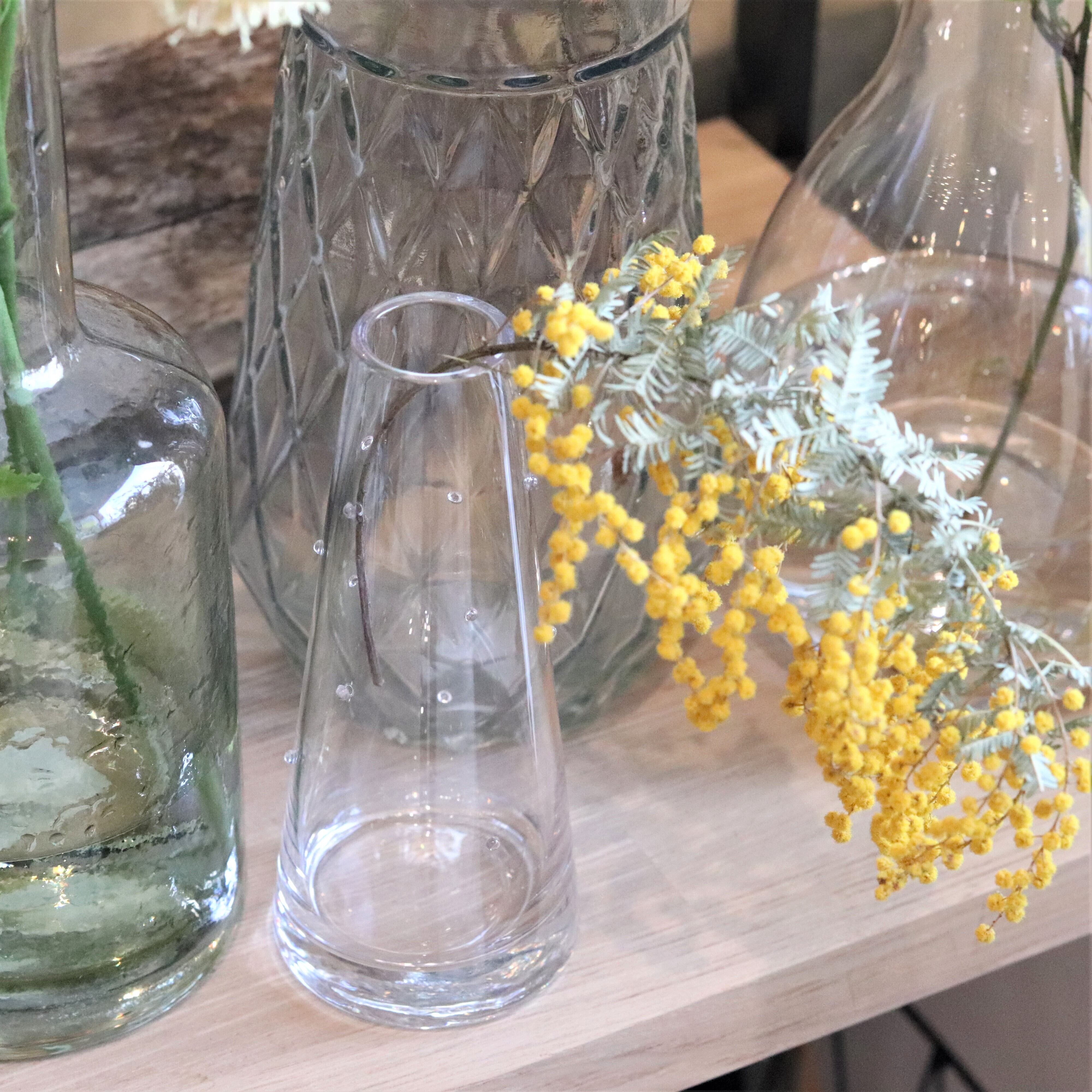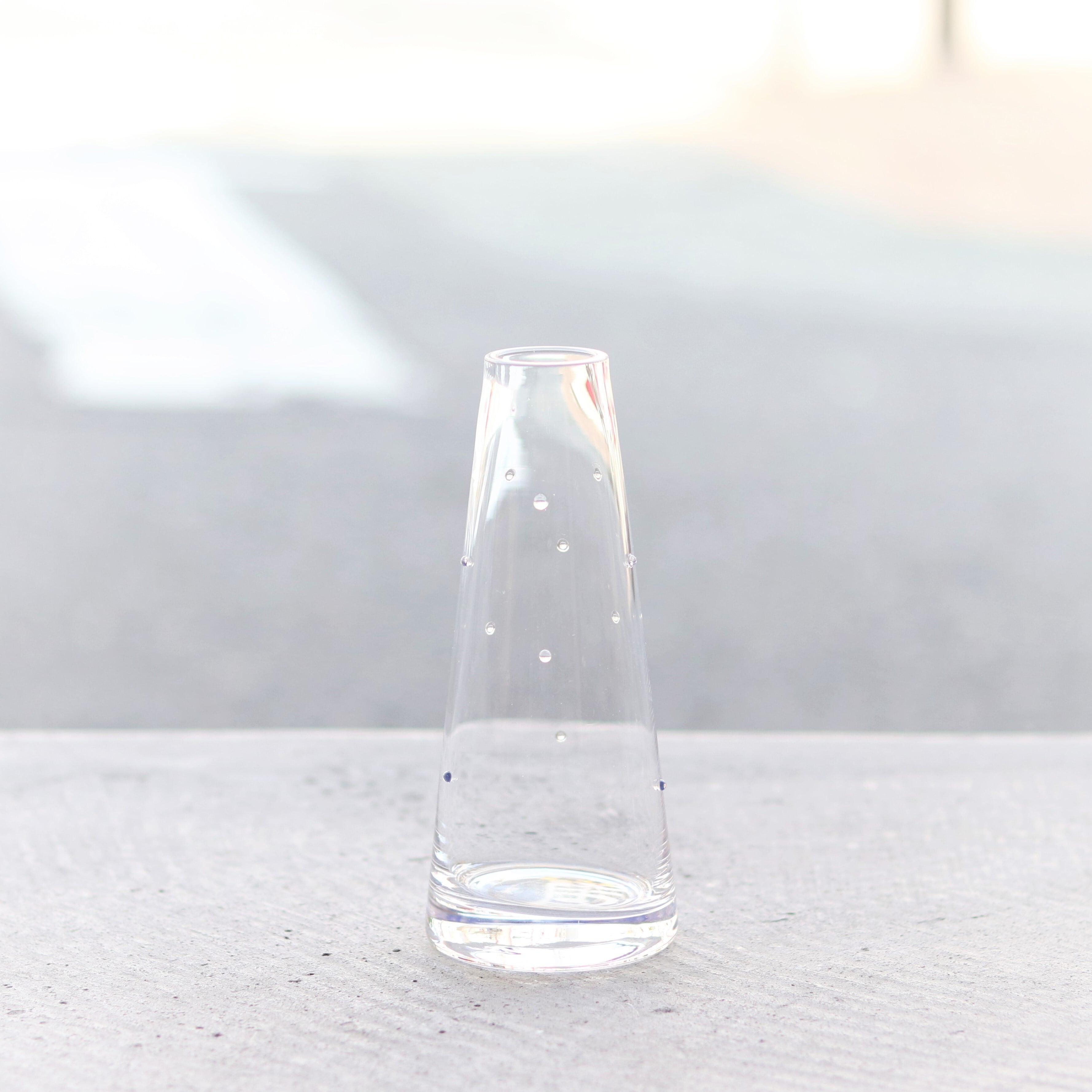 三角錐型の小さなフラワーベース Mサイズ 小ぶりなお花を飾ったり一輪挿しとしてお使いいただけます。 窓辺や食卓、サニタリーなどにも使いやすいサイズ感です。 ぷくぷくとした粒が規則的に並ぶかわいらしいベース。 ギフトにもおすすめです。 サイズ:直径3cm、高さ15cm