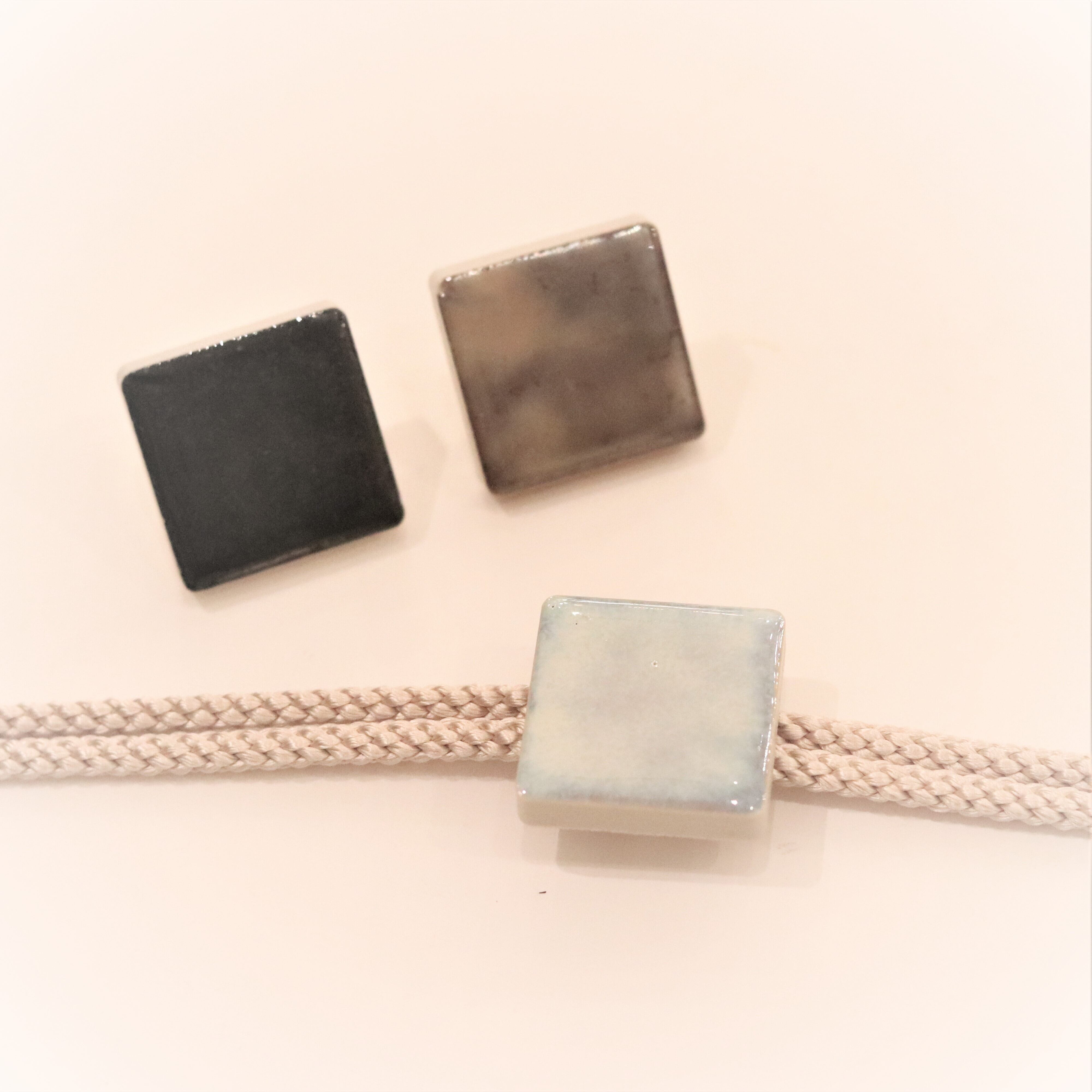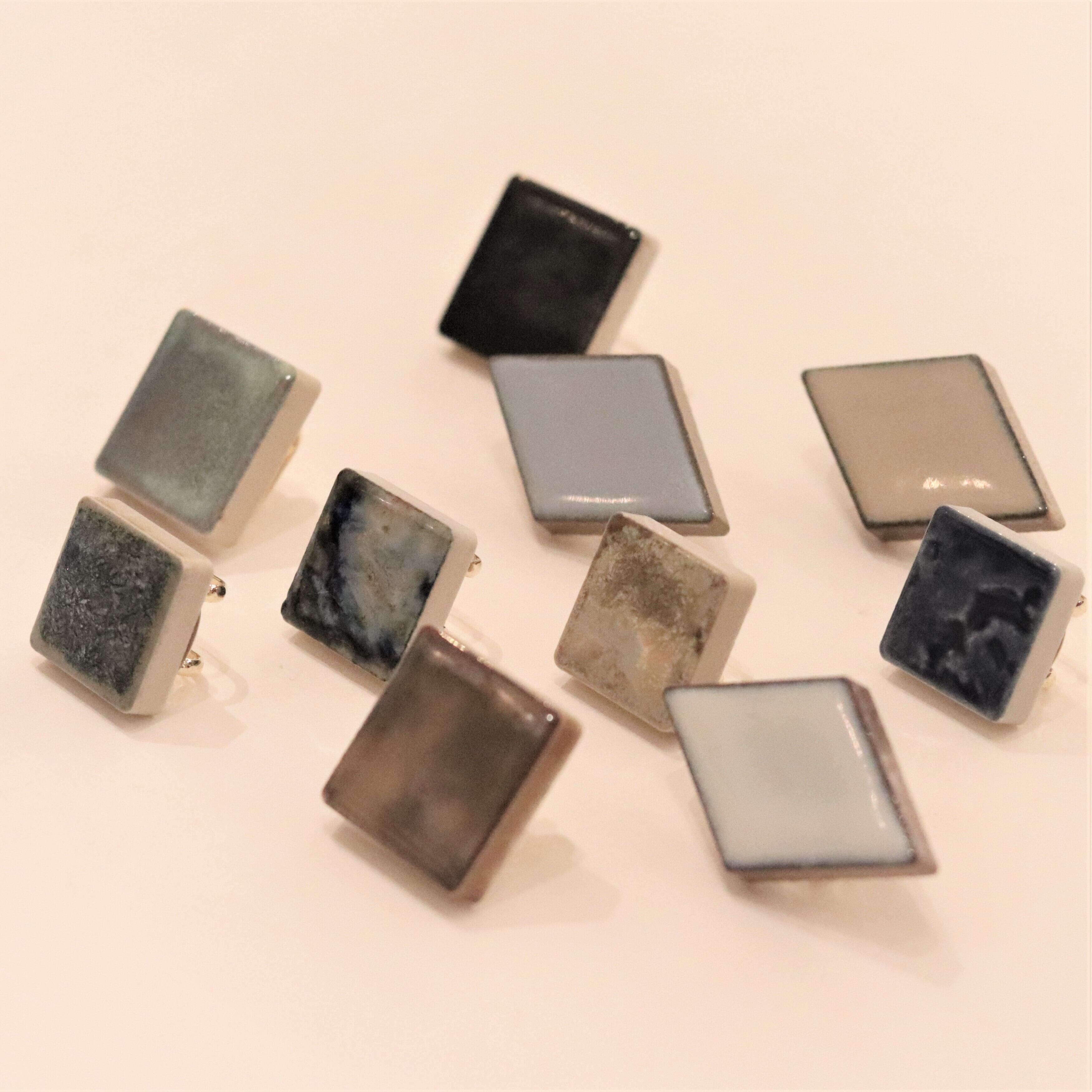 タイルならではの焼きムラや色合いが特徴的な帯留めです。