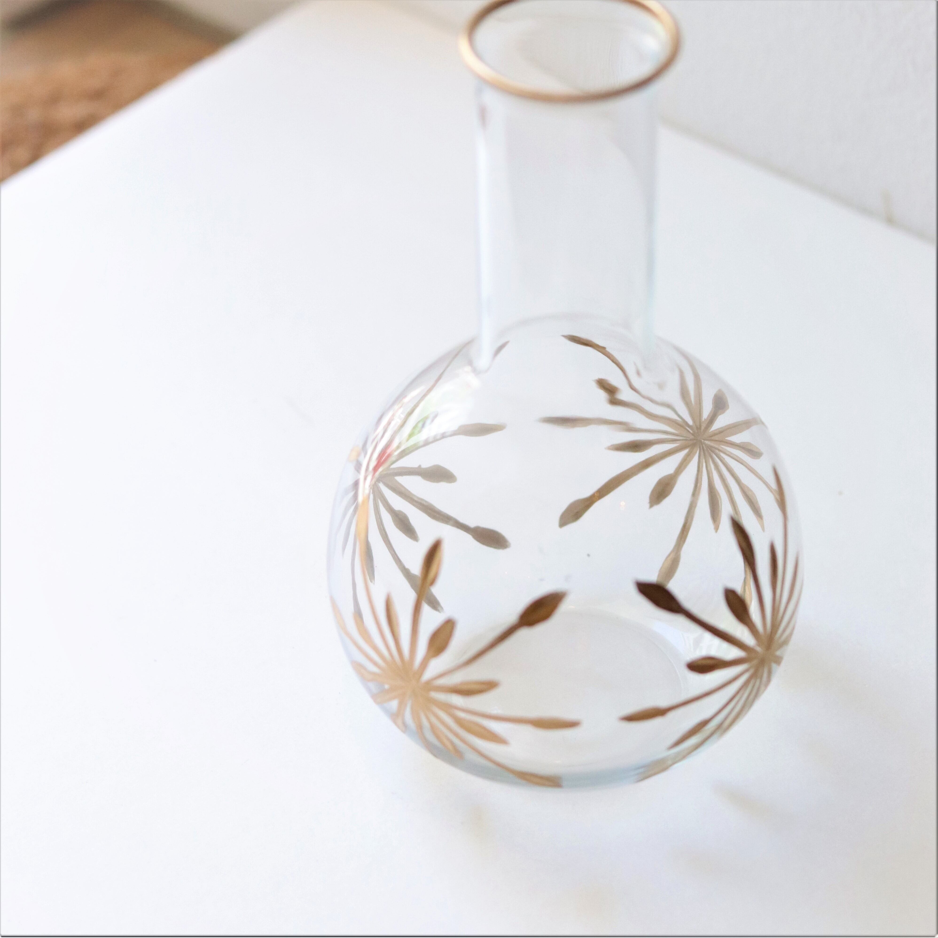 クリアガラスに雪の結晶を描いたようなゴールドデザイン入り。