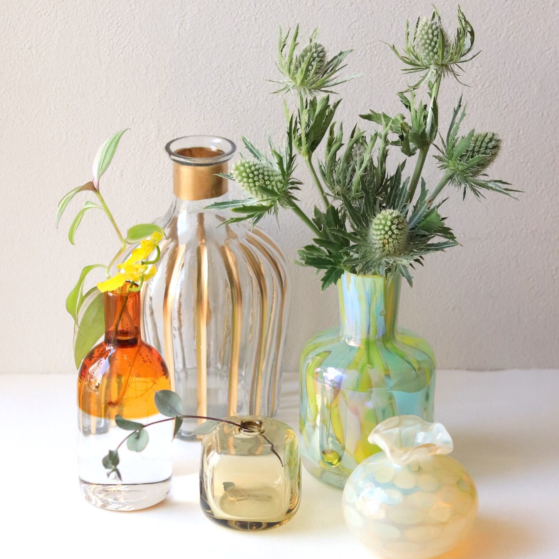 ぽってり安定感のあるガラスクリアガラスのフラワーベース