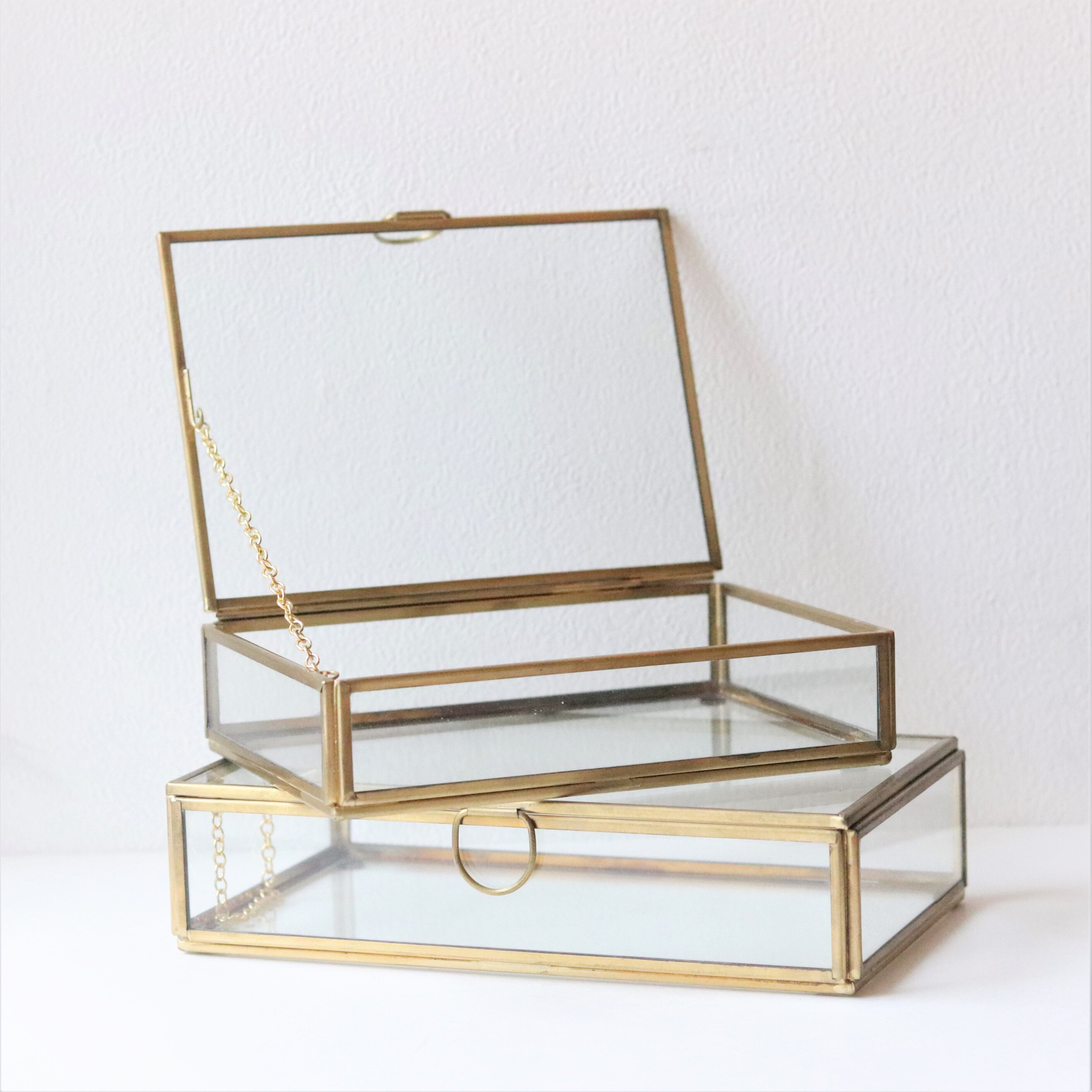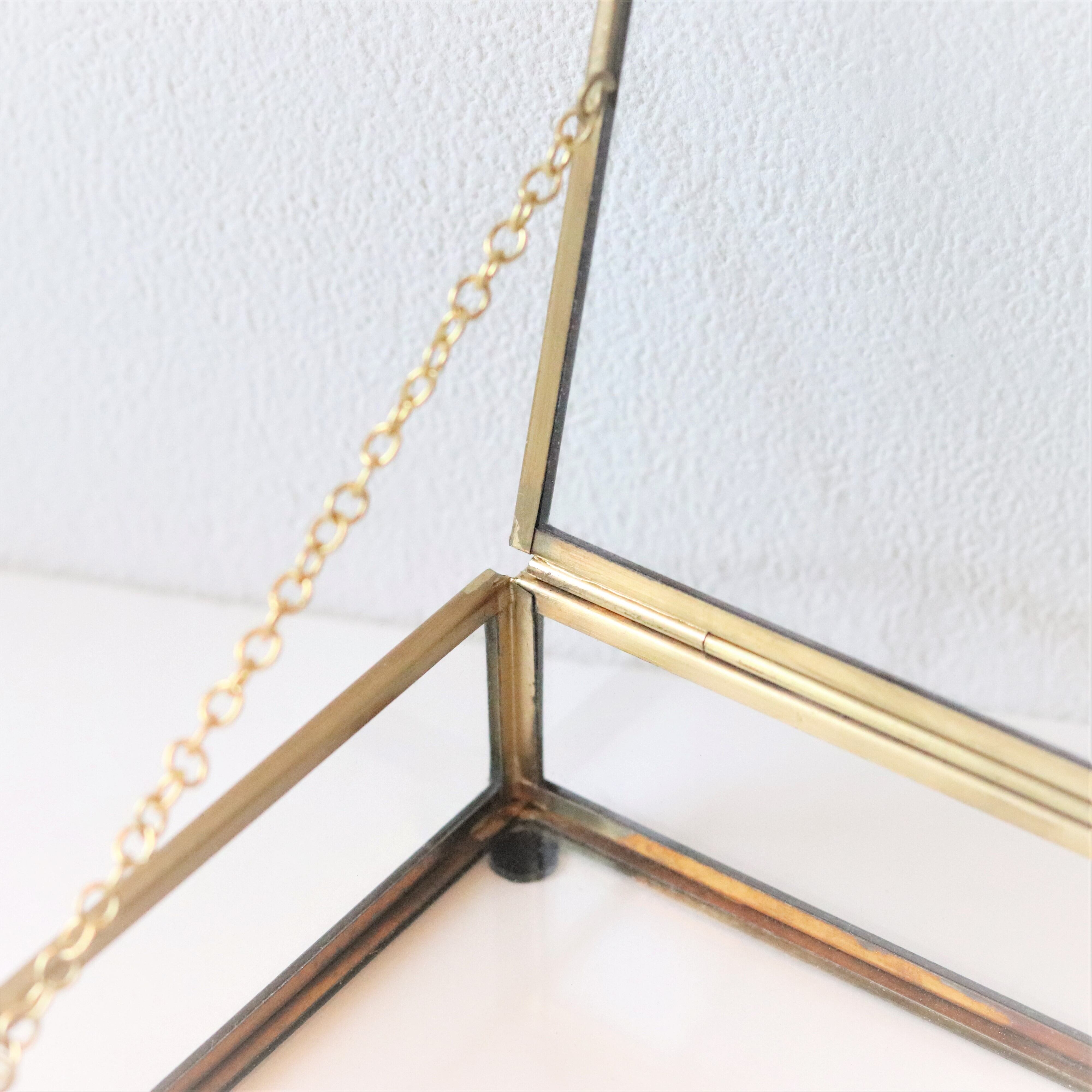 華奢な真鍮フレームとクリアガラスを組み合わせた