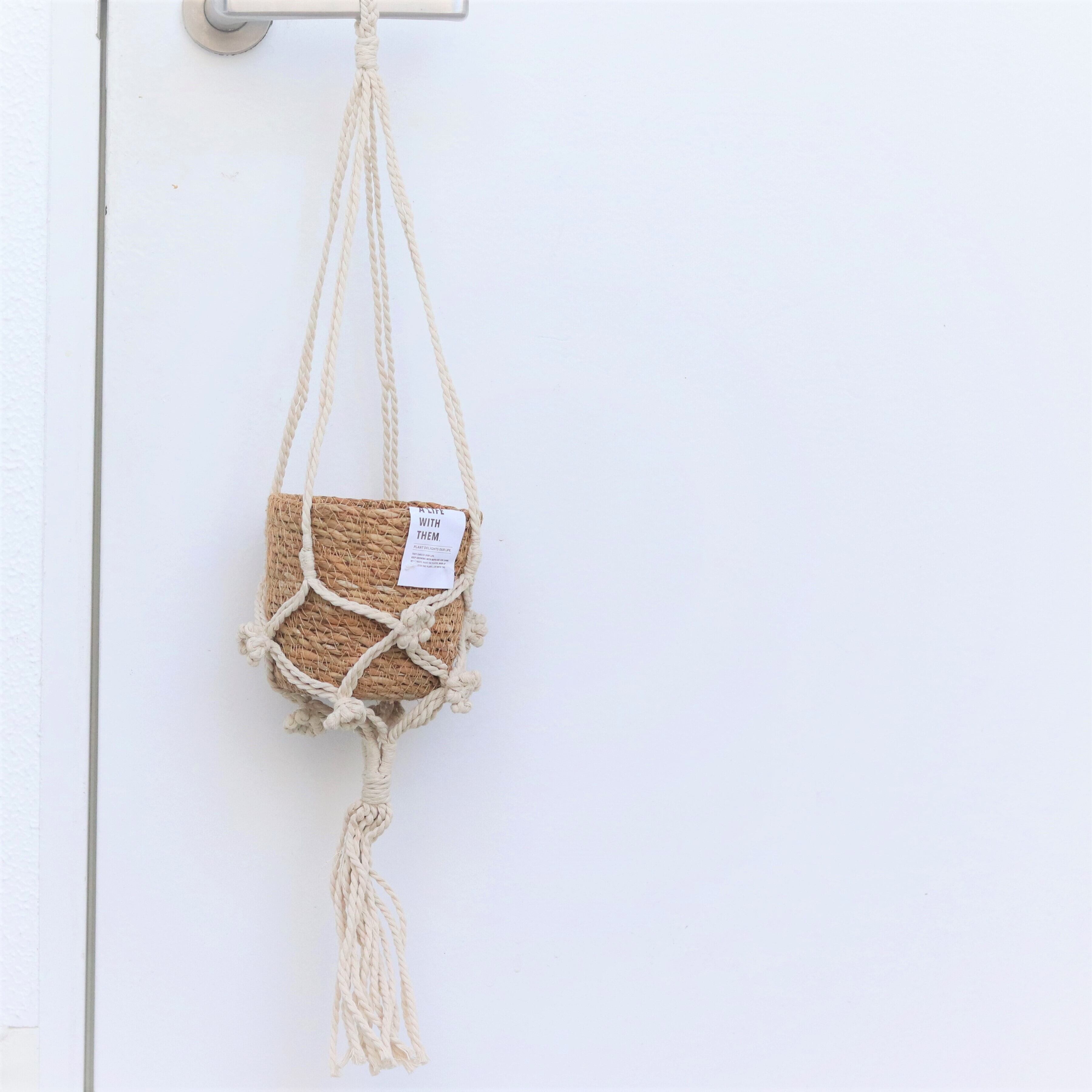 コットンロープをマクラメ編で編み上げたプラントハンガーと