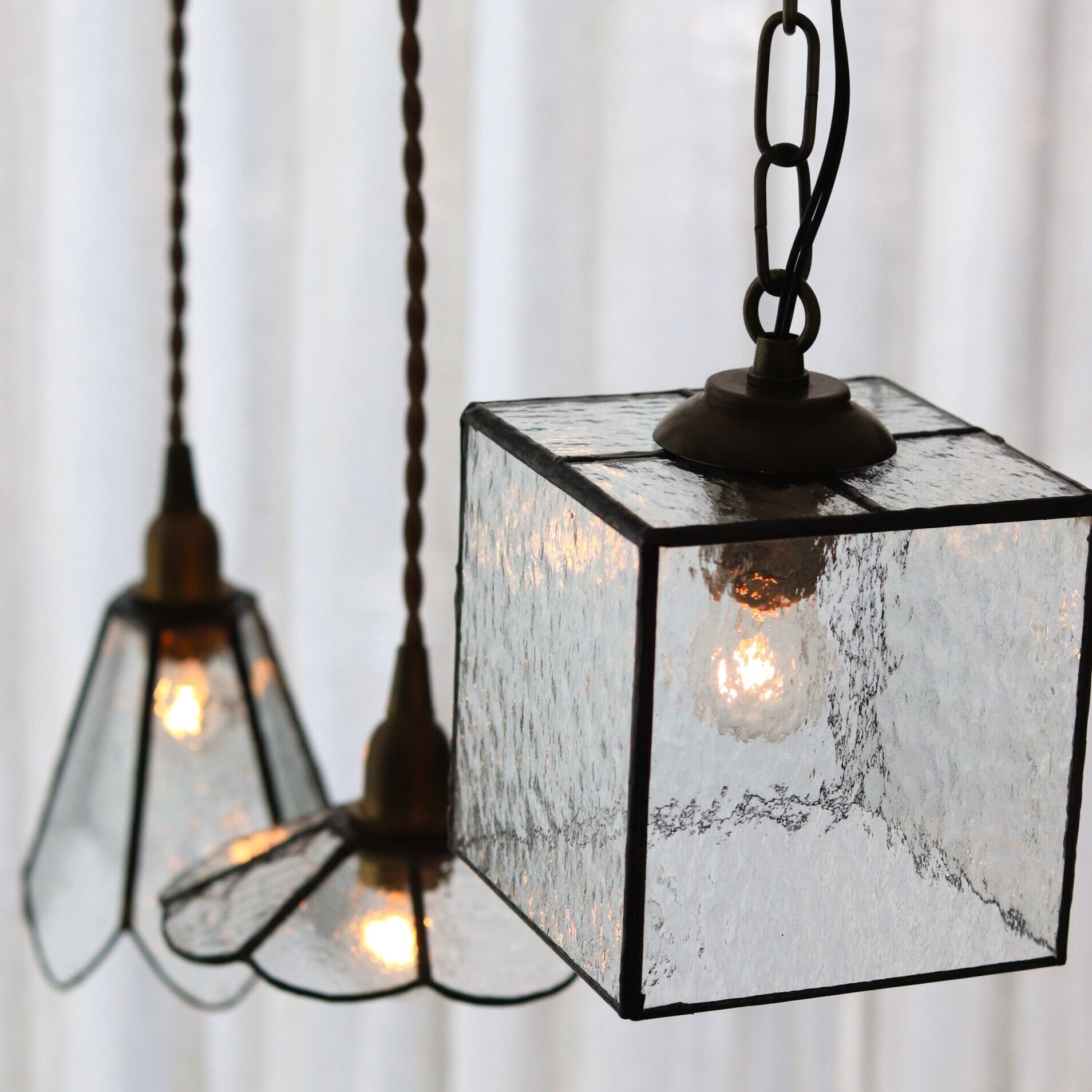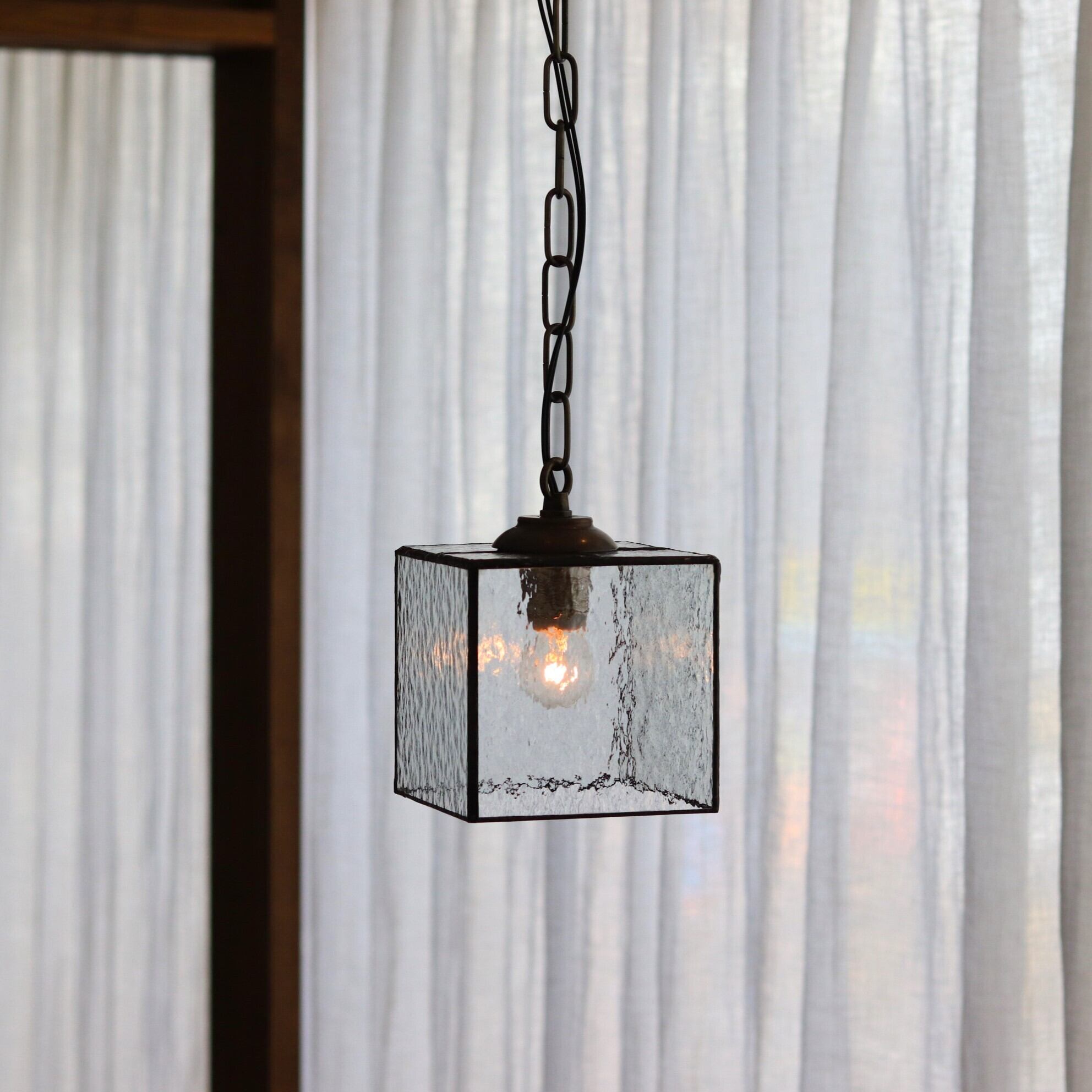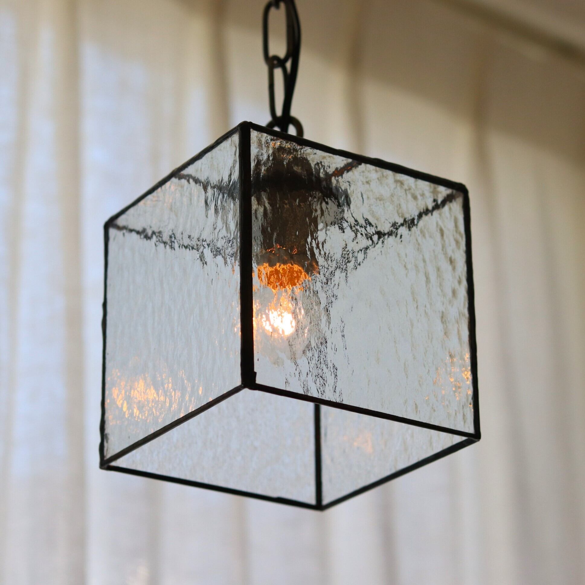 デザインガラスを箱型に組み合わせたランプ