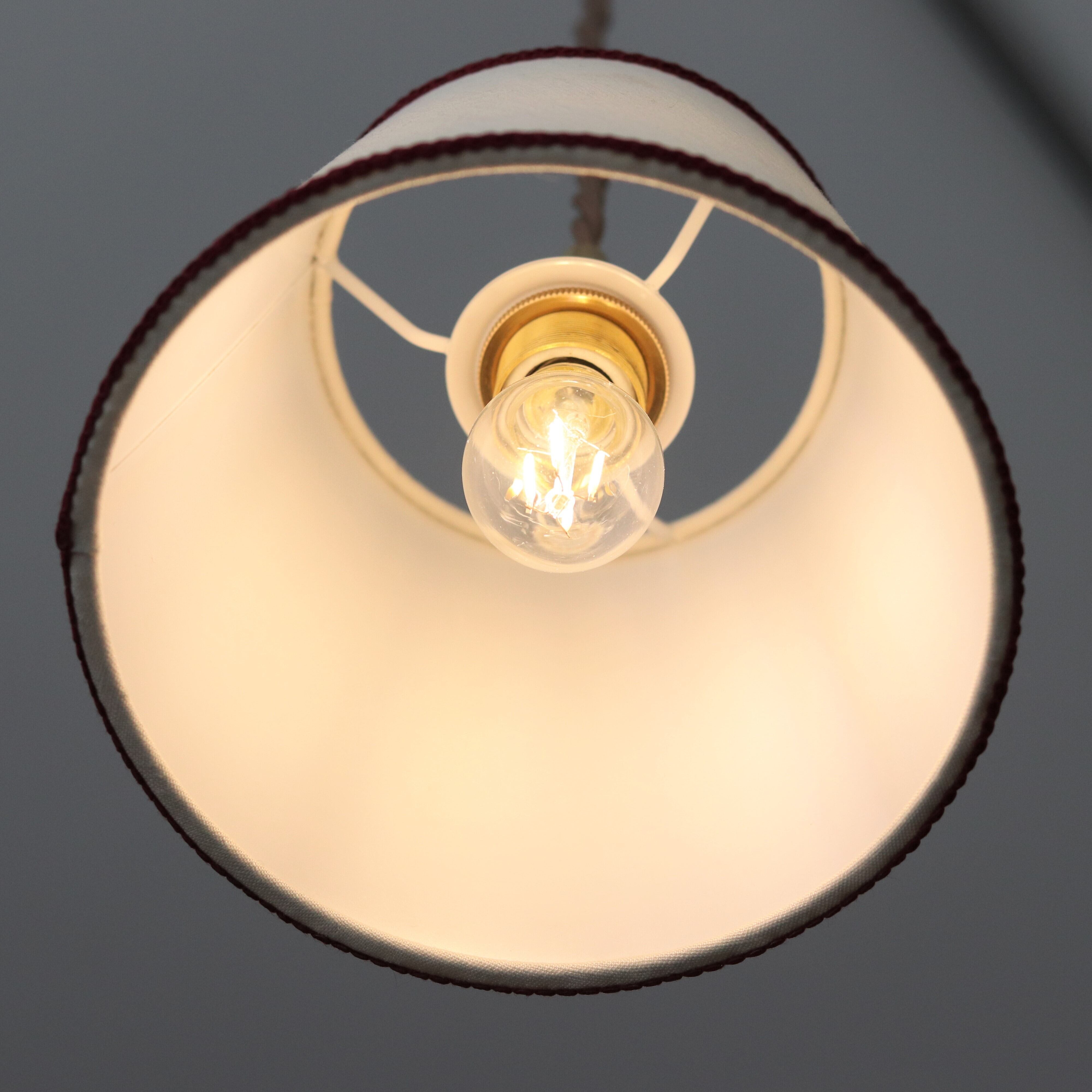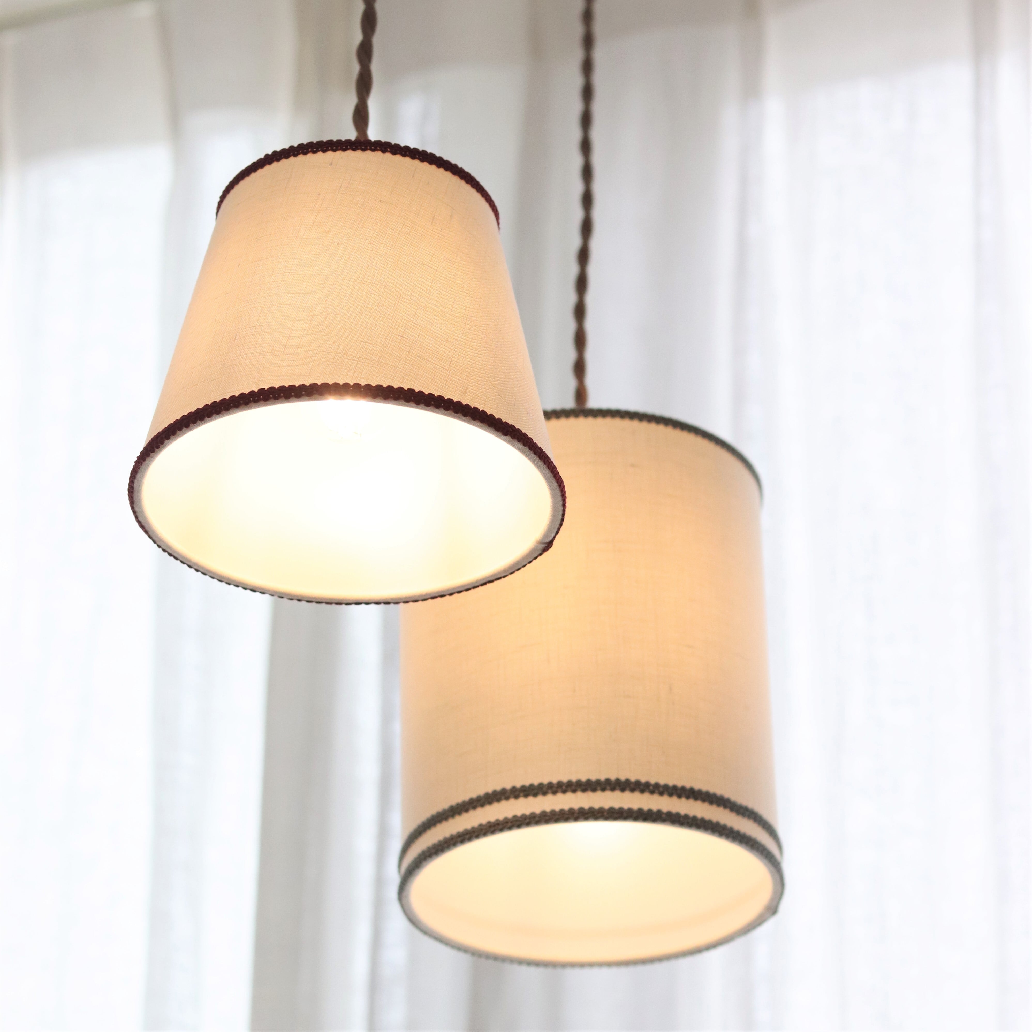 円錐型に布と耐熱シートを組み合わせたペンダントランプ