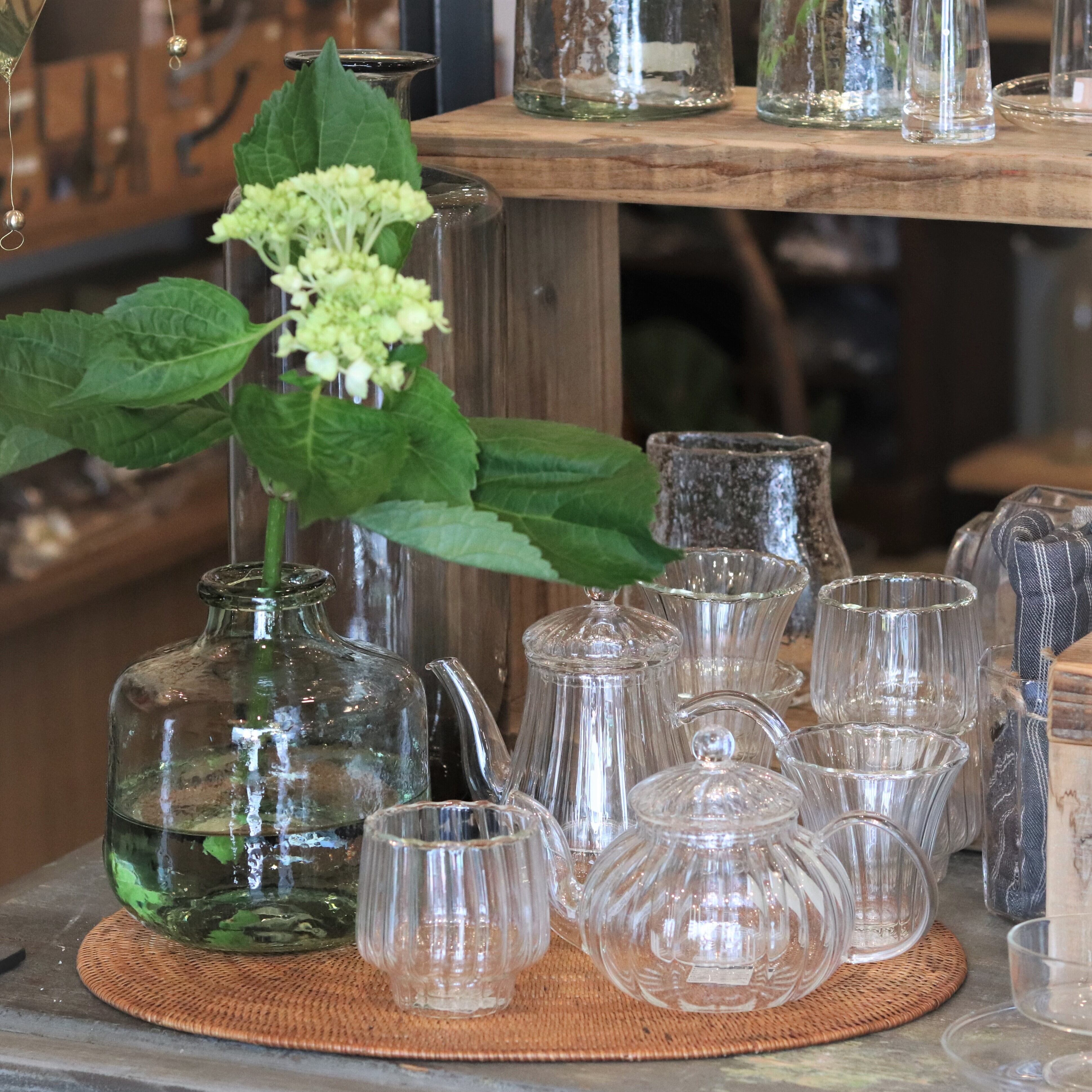 クリアガラスの耐熱カップ ガラス製ですが軽くて持ちやすいため 様々なシーンで気軽に使える一品。 レトロな風合いも素敵です。 風合いたっぷりな見た目の雰囲気と アイスやフルーツなどちょこっとデザートの盛り付けにもおすすめです。 ◎電子レンジ使用可 サイズ:直径8.8cm、高さ9cm 容 量:150ml