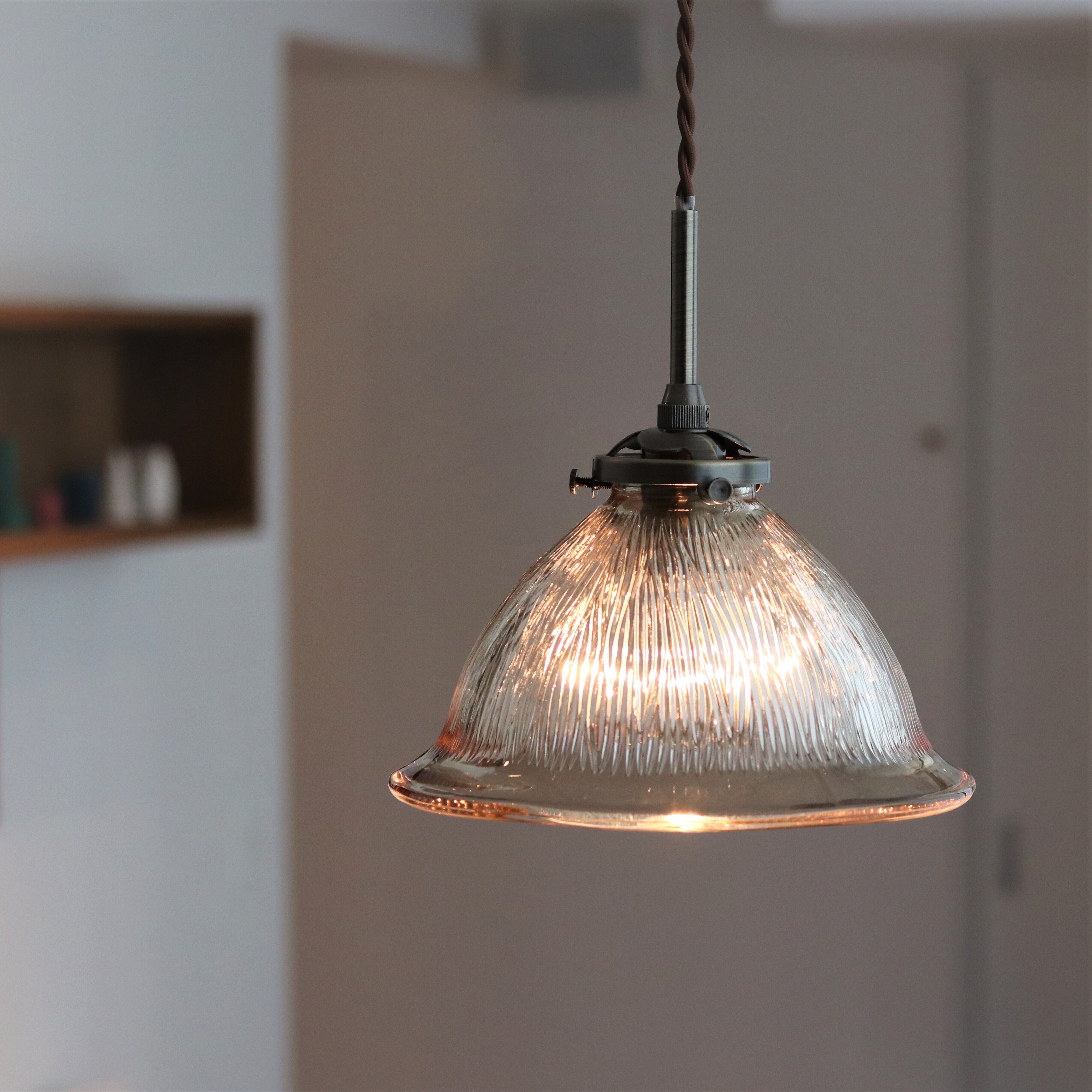 ブラウンガラスシェードのペンダントランプ