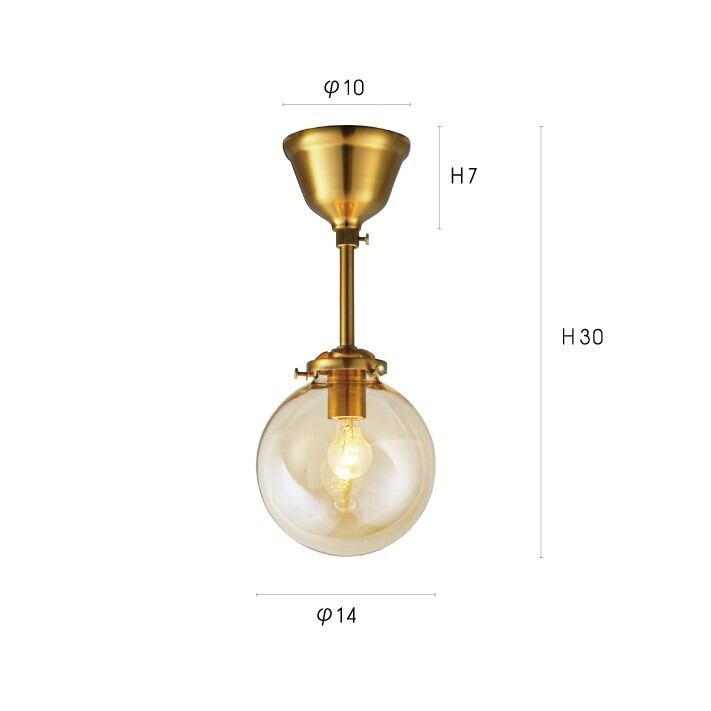 ゴールドのソケットに丸いガラスシェードを合わせたスポットライト