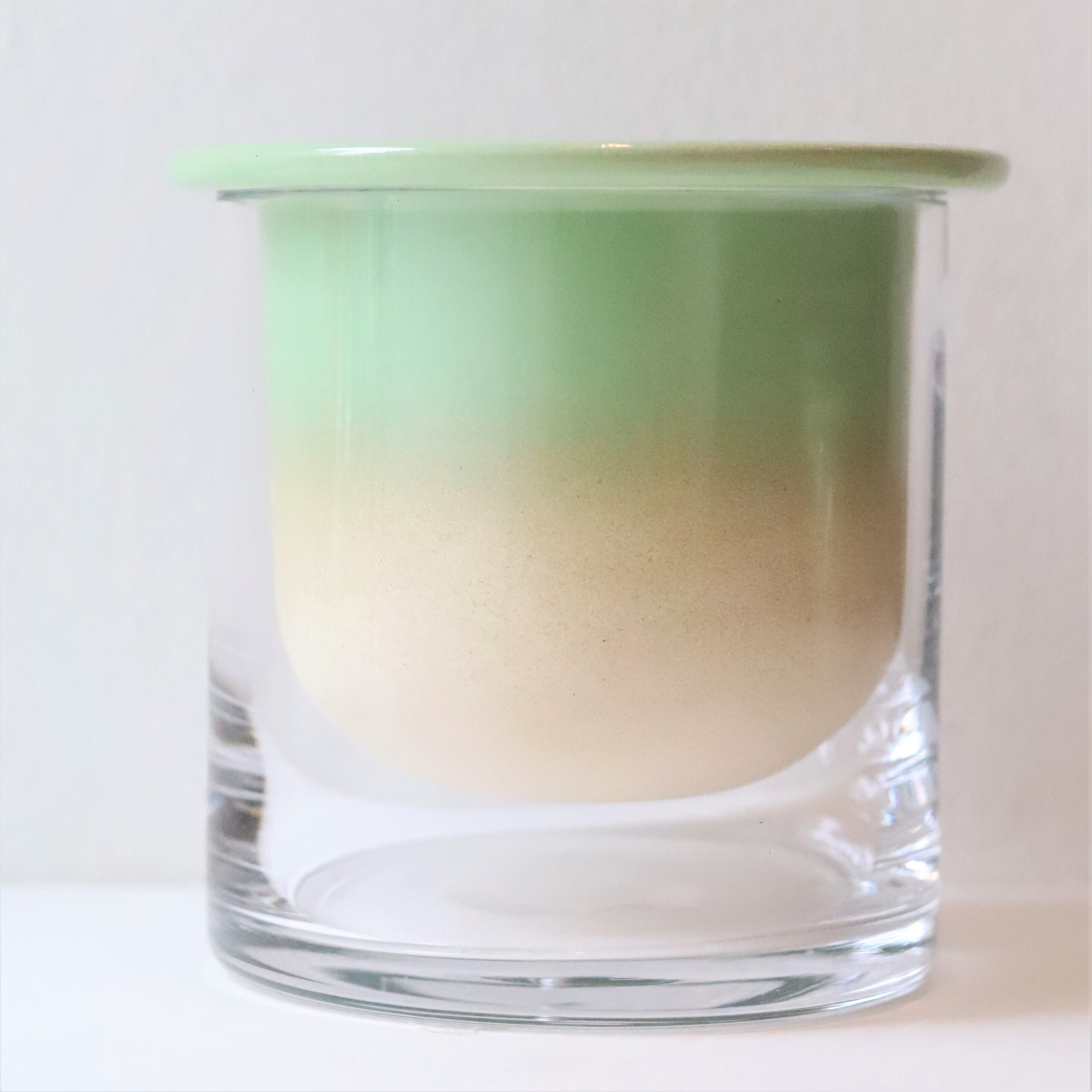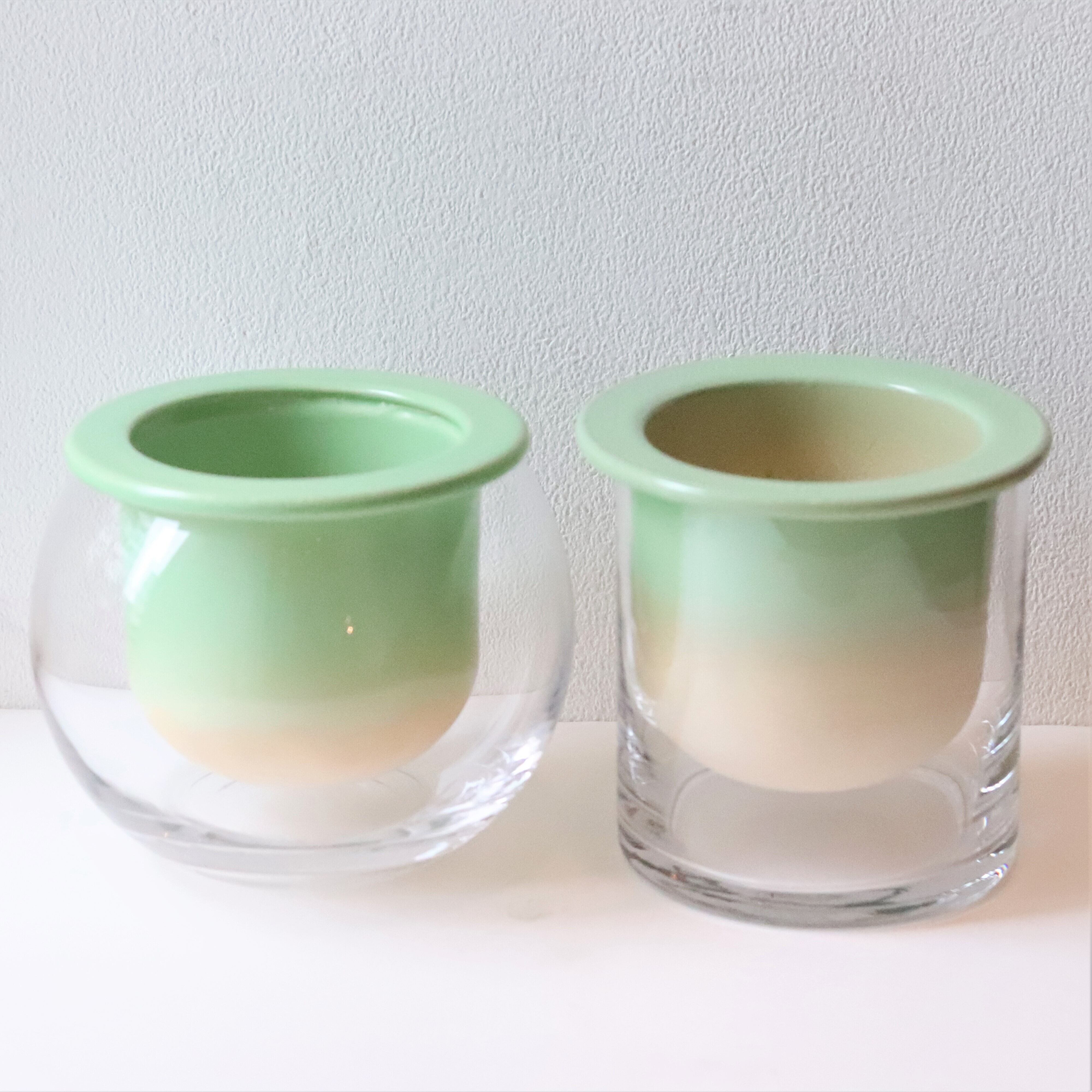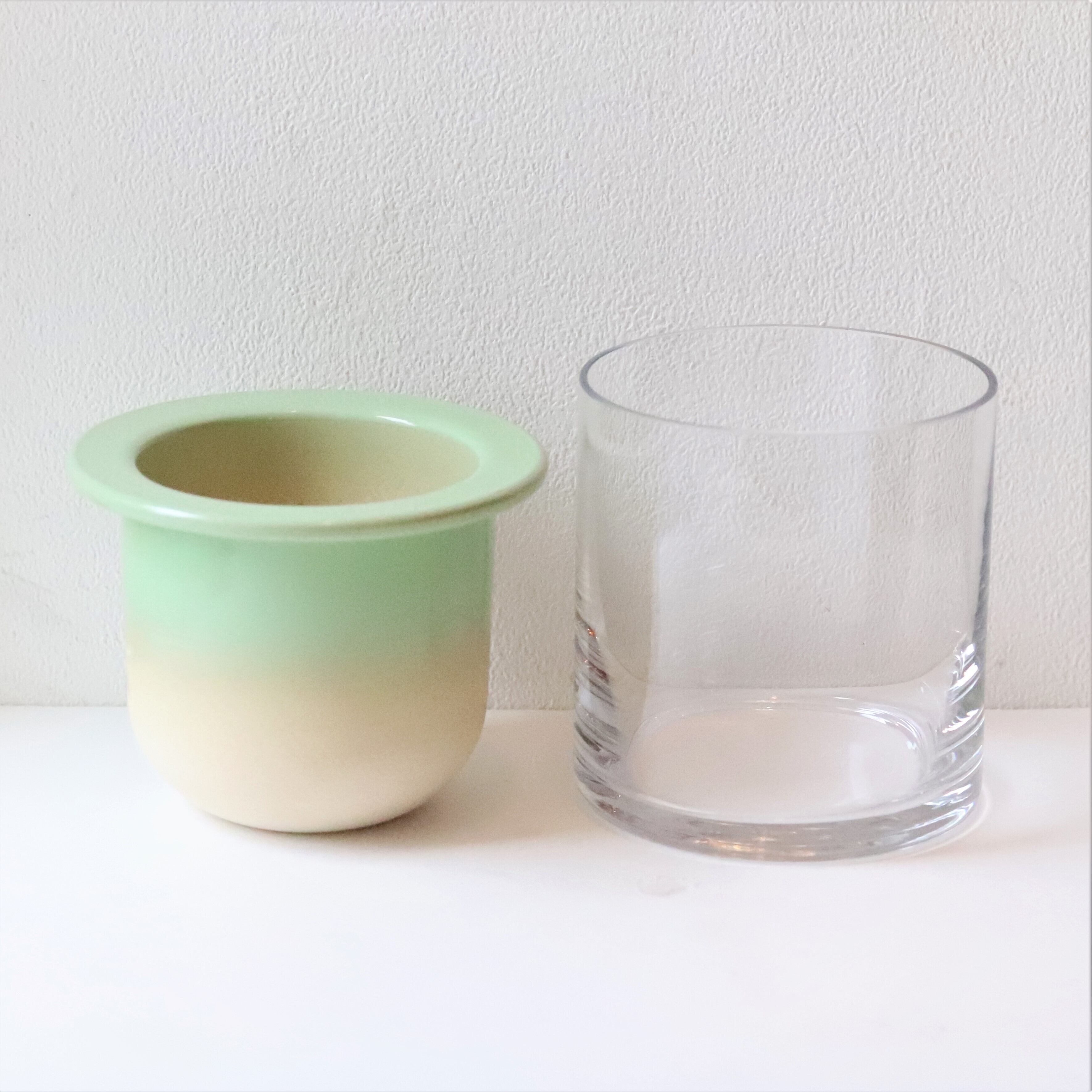 陶器鉢の上にガラス鉢を重ねてお使いいただくプラントポットです。