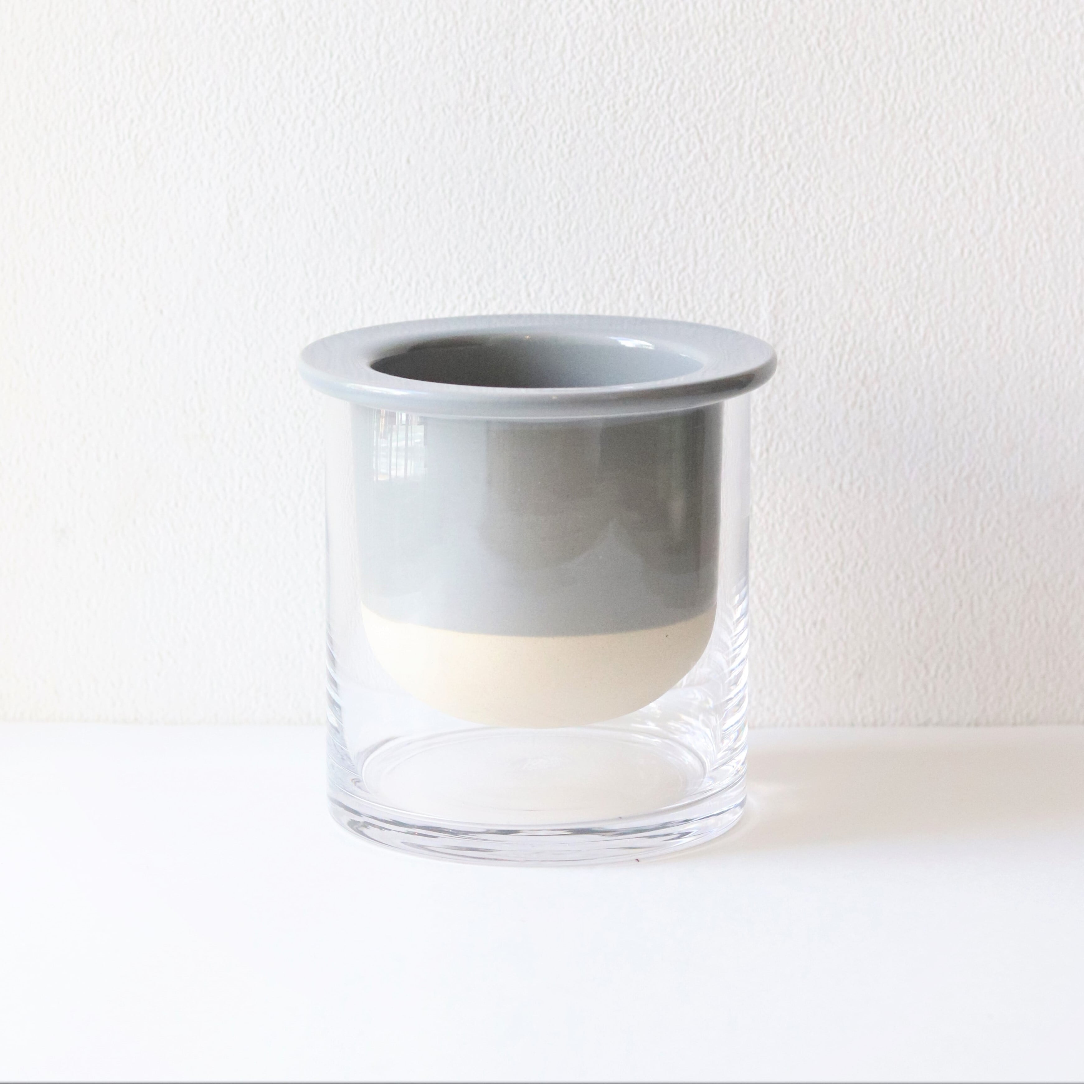 陶器鉢の上にガラス鉢を重ねてお使いいただくプラントポットです。