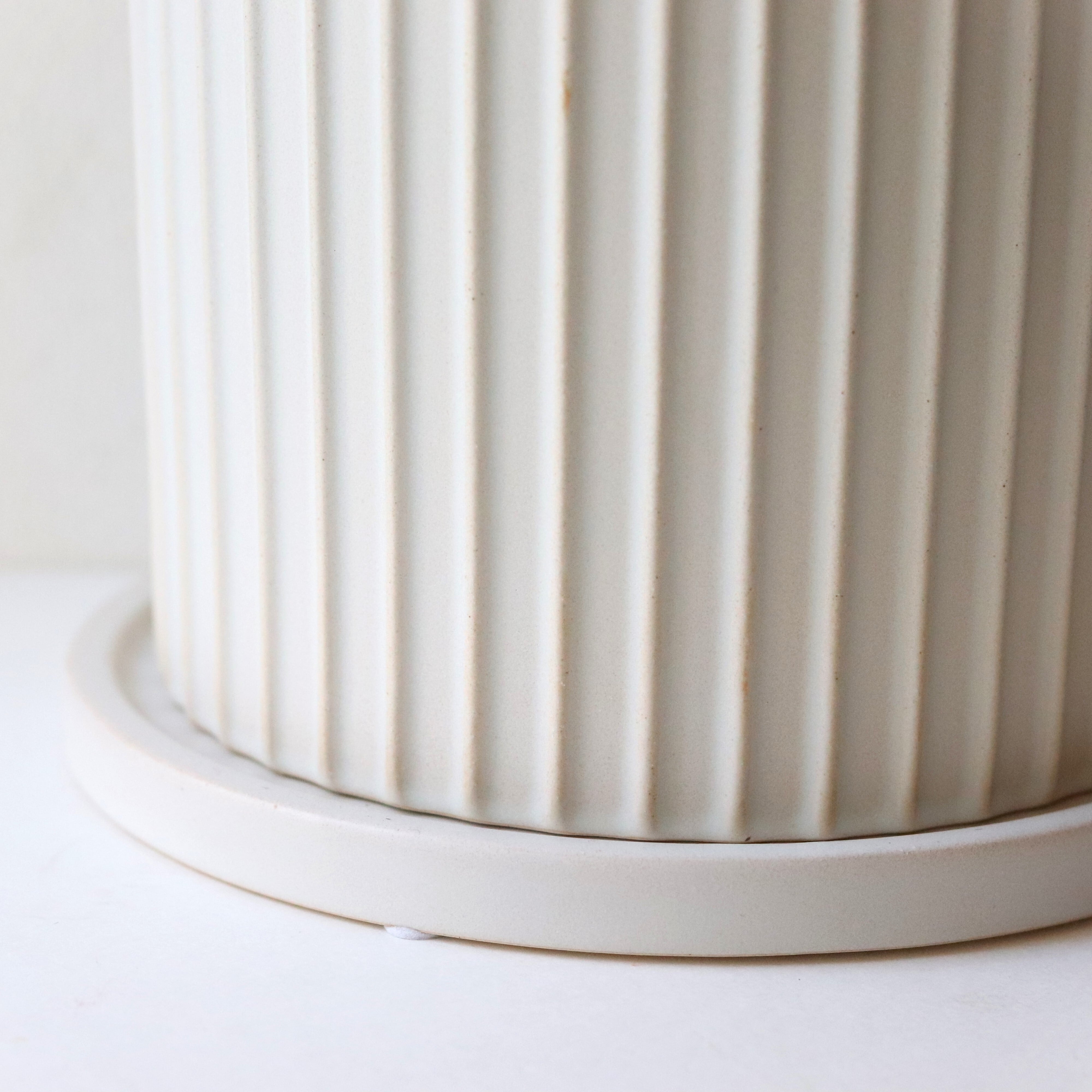 鉢側面に立体的なたてスリットが入ったお洒落な植木鉢 ホワイト