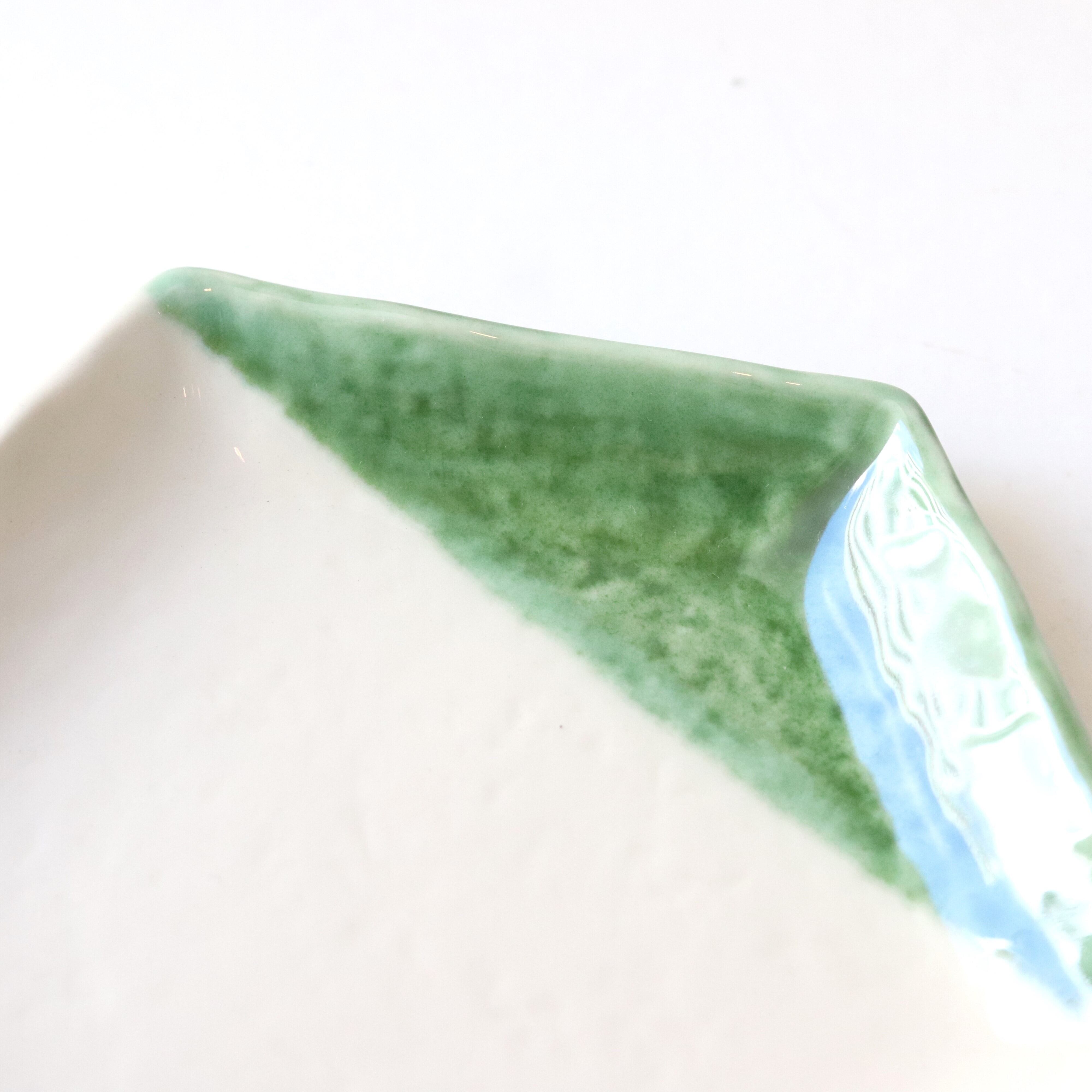 ひとつの角だけを染めた色釉には、瀬戸焼で代表的な