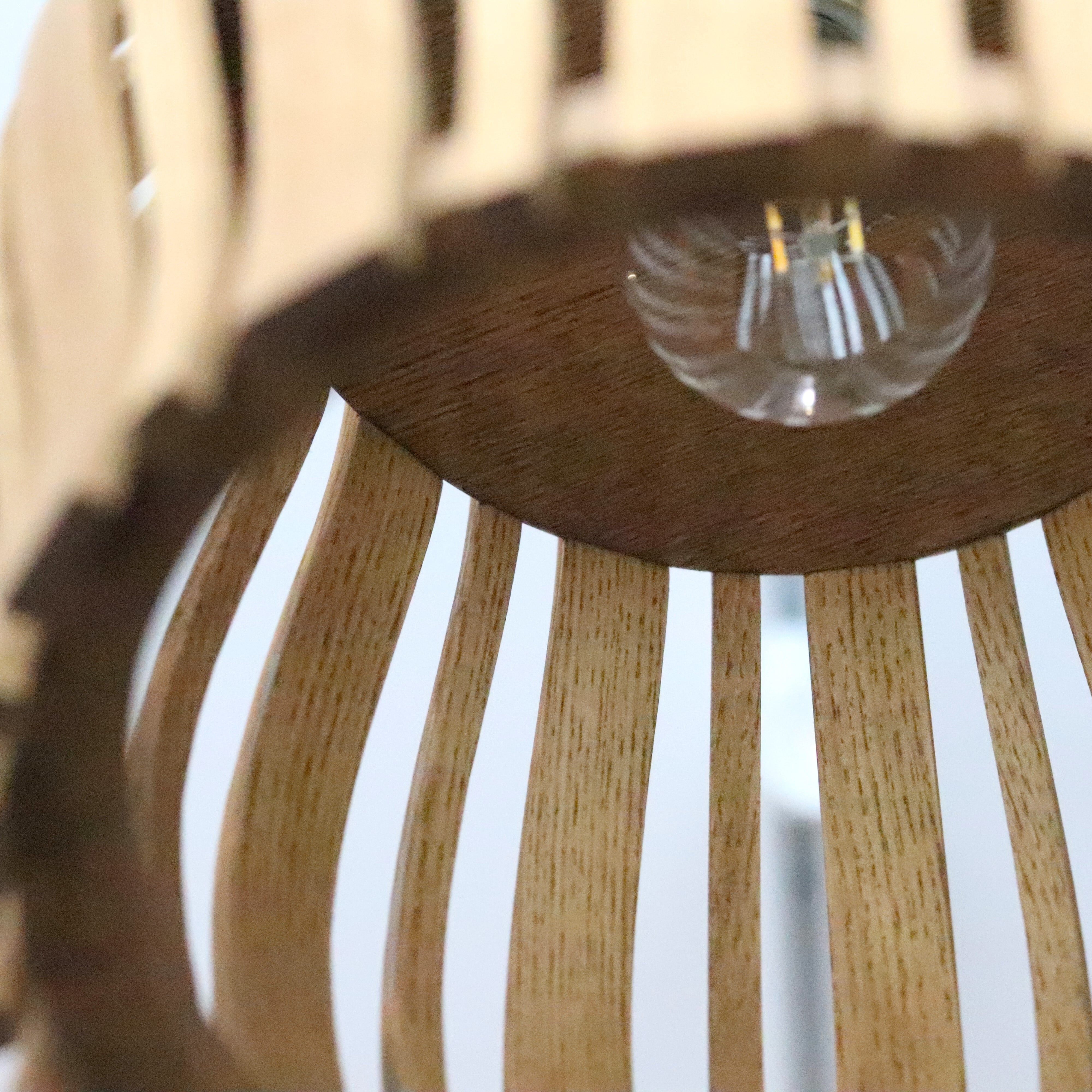 木のシェードと真鍮の灯具のバランスが素敵なペンダントライト