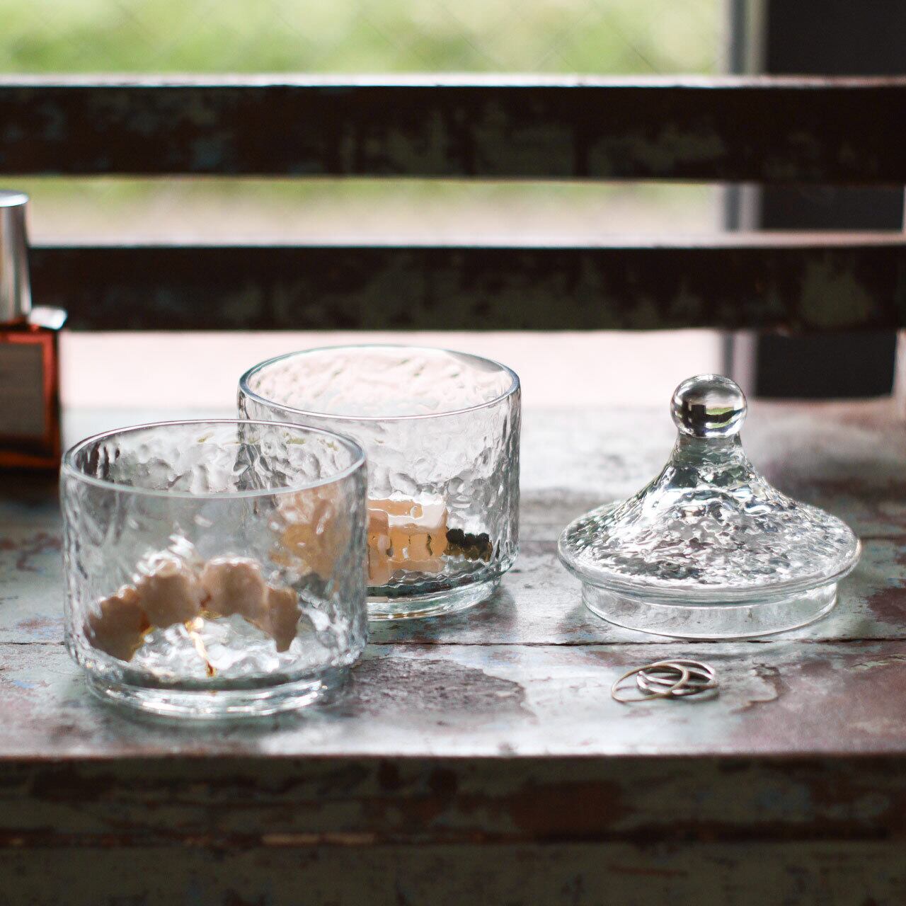 ガラスのゆらぎが美しい小物入れにぴったりなガラスキャニスター