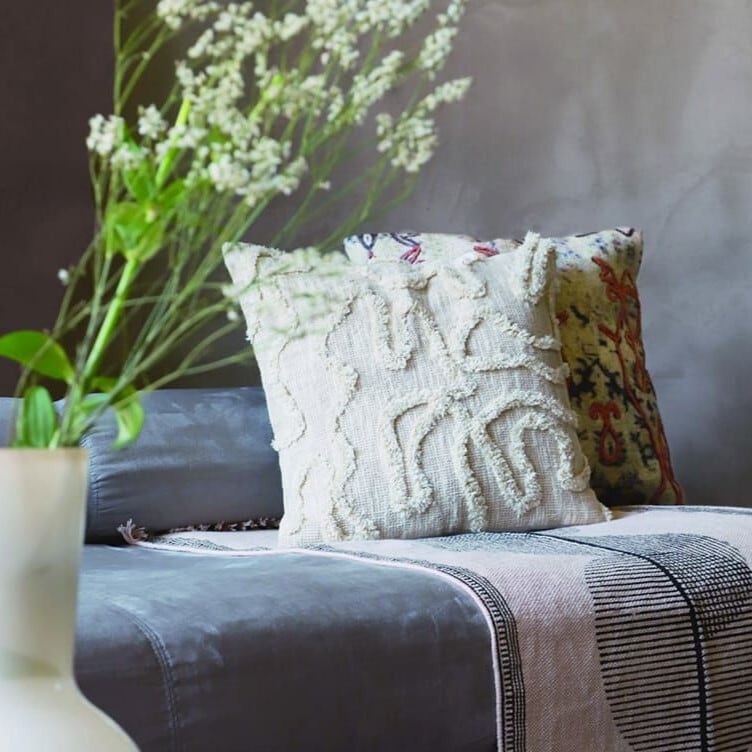 温かみのあるカラーにタフトが施された遊び心があるデザイン。