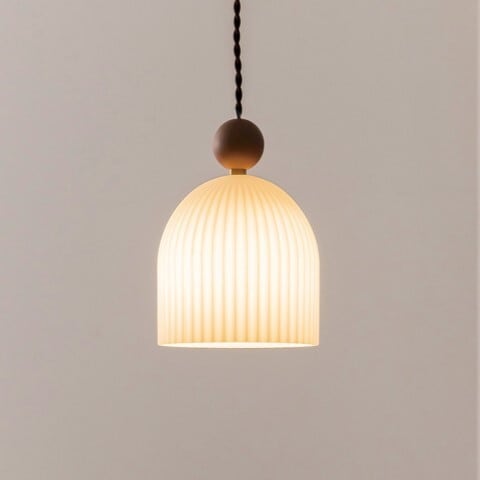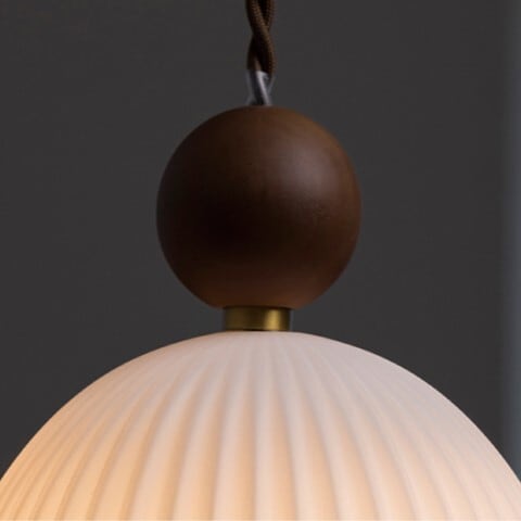 ドーム状のガラスセードの上に添えられた小さなウッドボールがアクセントに。