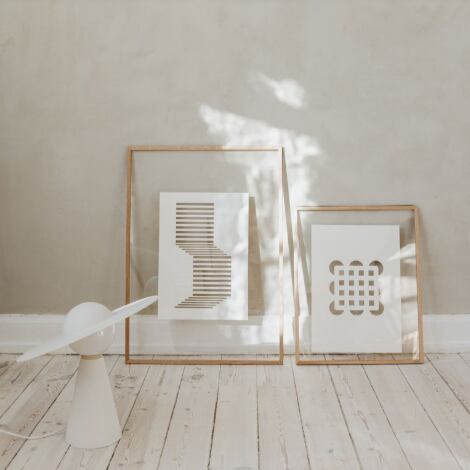 アクリル板2枚、枠材4本、ラバーバンド1本というシンプルかつ美しい構造は、