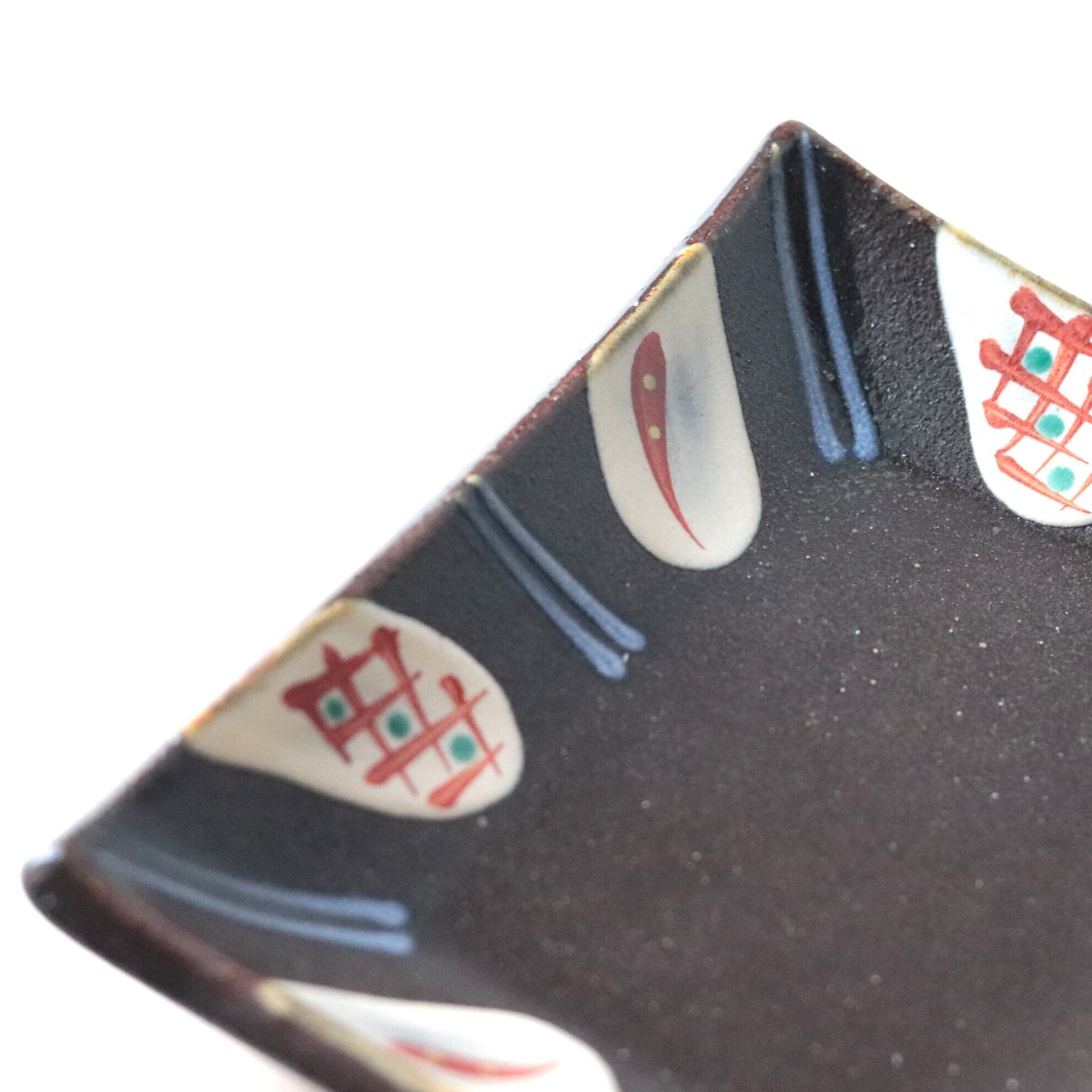 【食器】やちむん 四角皿口15赤絵刷毛目