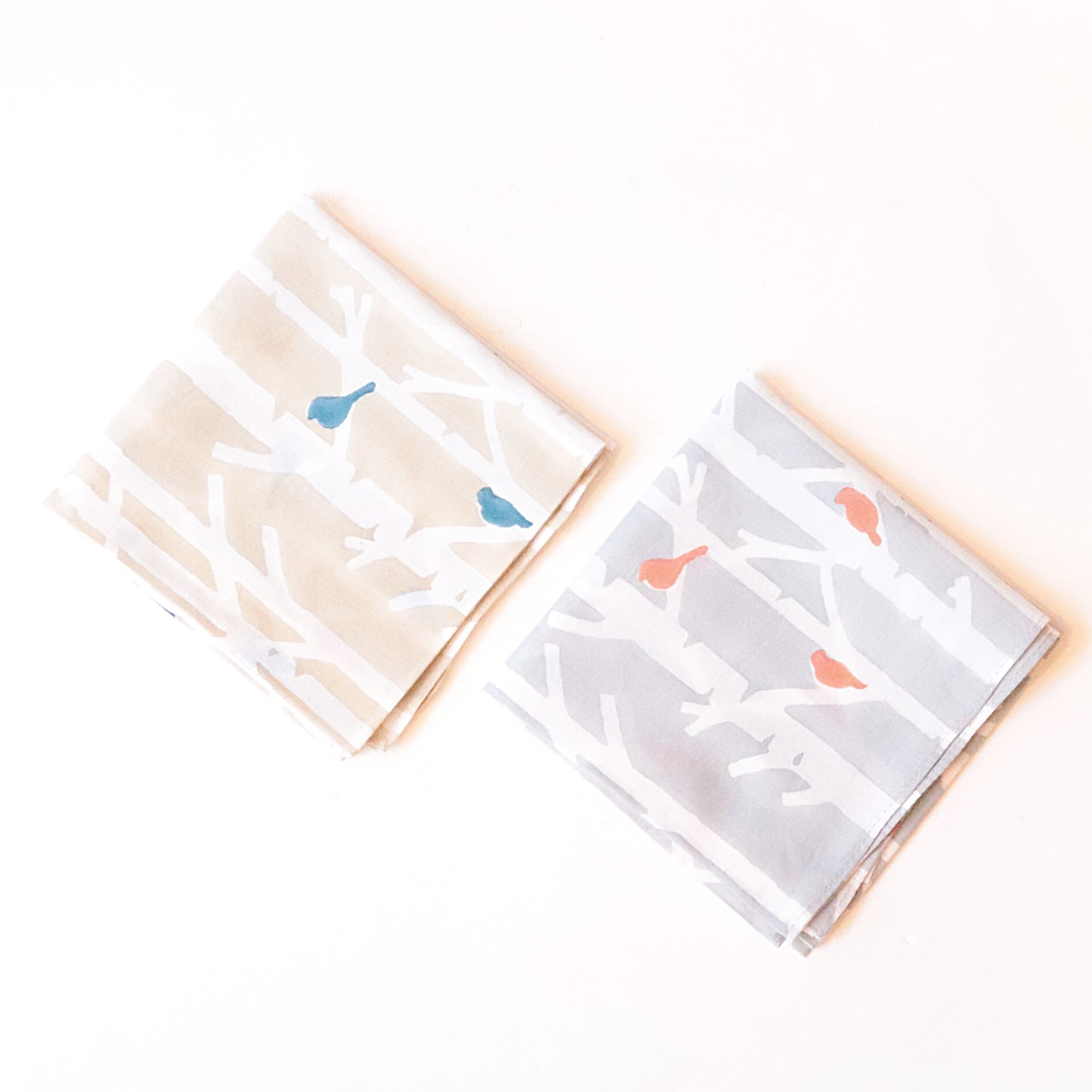 静けさが広がる北欧の森の中で、さえづる鳥達をイメージしたハンカチ。