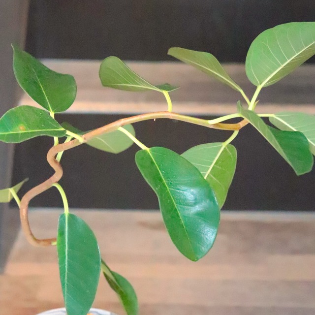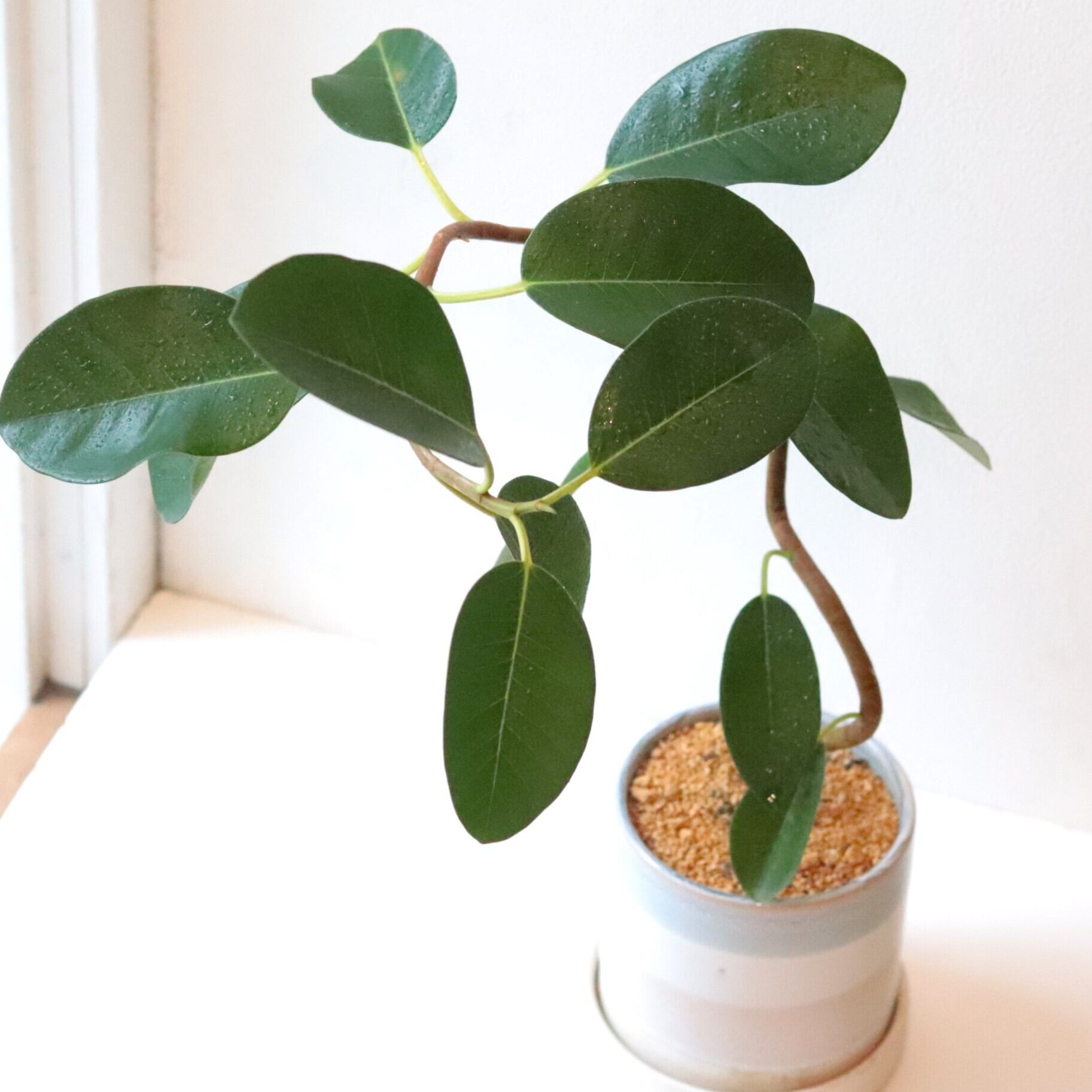 ゴムの木の仲間で、丸みを帯びた艶のある葉と