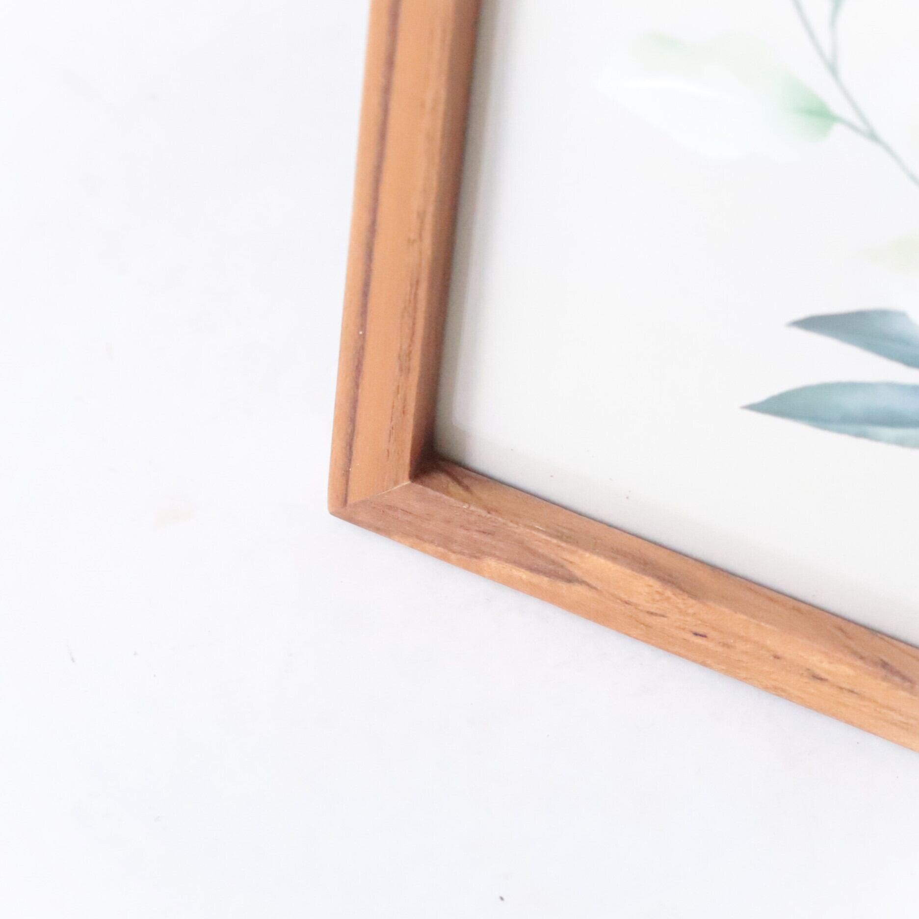 ボタニカルな水彩画が入ったシンプルな木枠のフォトフレーム。