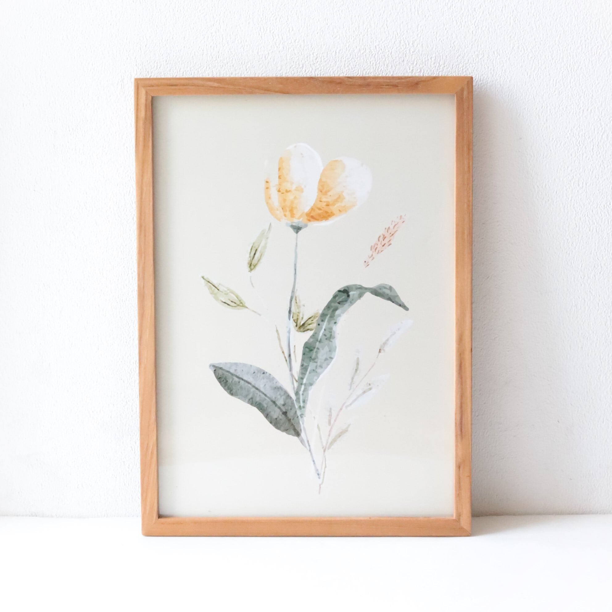 ボタニカルな水彩画が入ったシンプルな木枠のフォトフレーム。