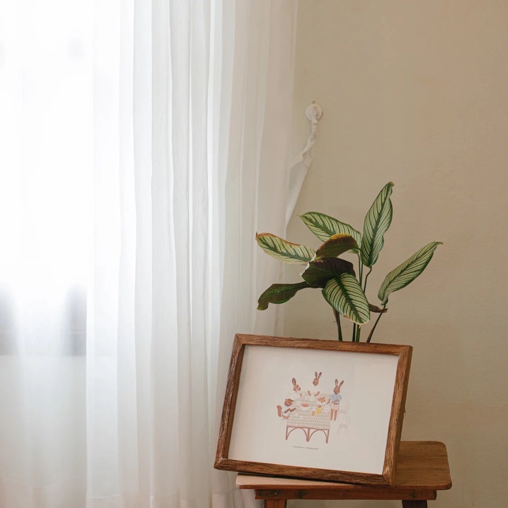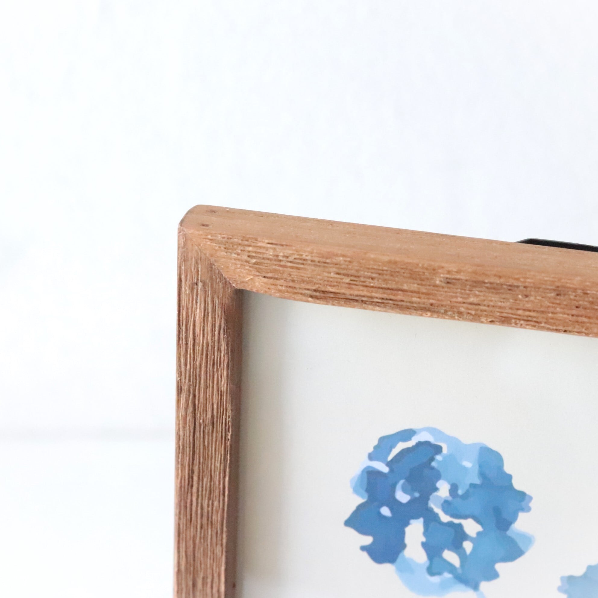 ボタニカルな水彩画が入ったシンプルな木枠のフォトフレーム。