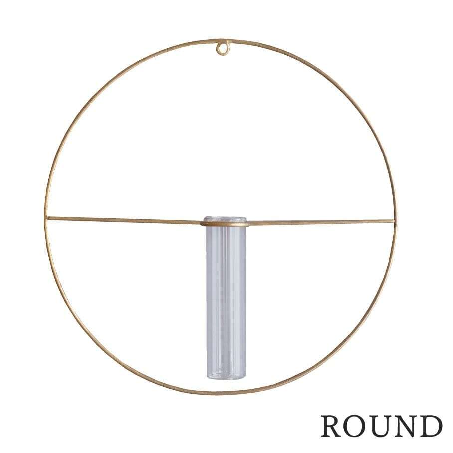 真鍮のフォルムが印象的な壁面を彩る一輪挿し
